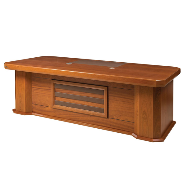 - Bàn giám đốc DT2411V15 làm từ Gỗ Veneer cao cấp. Mặt bàn lãnh đạo DT2411V15 hình chữ nhật vát xéo góc, có tấm PVC phần ngồi viết.