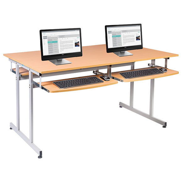 - Bàn vi tính thư viện BM101 sử dụng khung sắt, mặt gỗ công nghiệp Melamine. Bàn vi tính The One BM101 thiết kế 4 chỗ ngồi chia đều 2 cho mỗi bên. Sản phẩm có kệ CPU di động đi kèm.